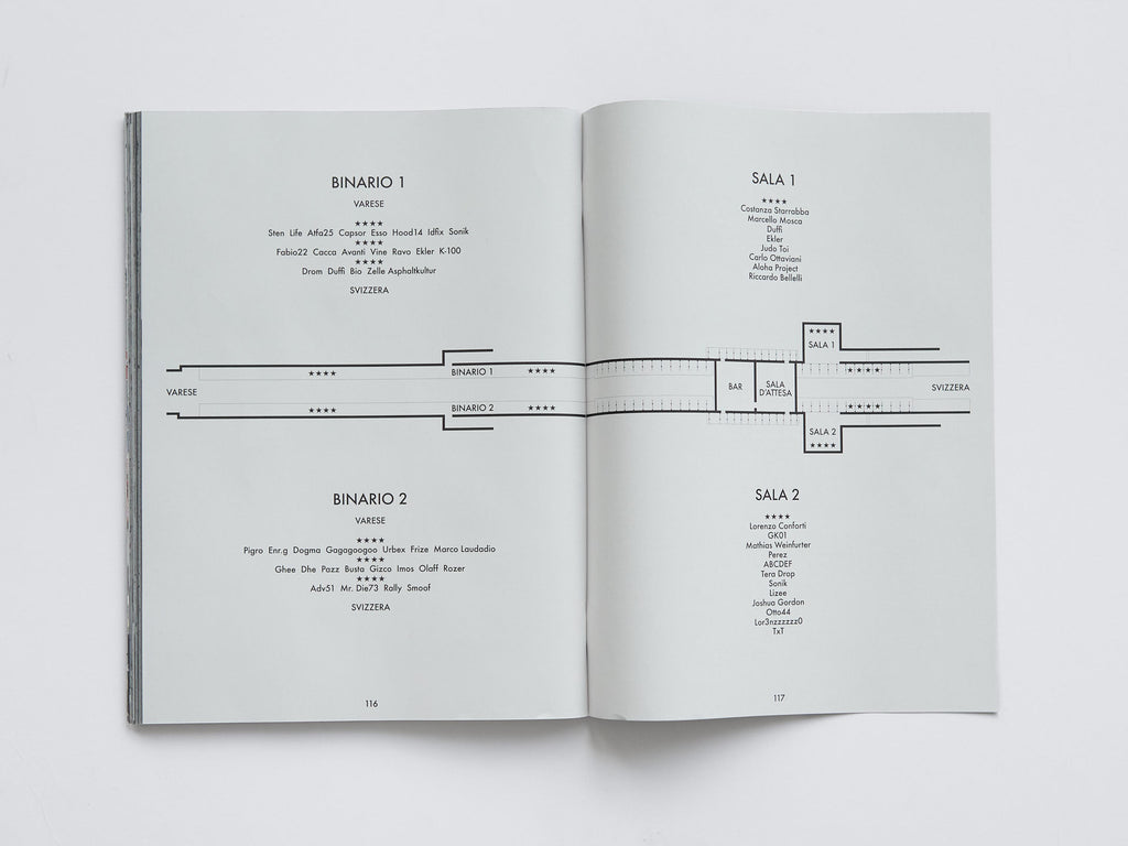 Tra settembre 2023 e maggio 2025, 55 artisti internazionali hanno contribuito a Tono su Tono, la prima mostra del museo Grigio Azzurro Verde, inaugurato nella stazione di Induno Olona il 15 giugno 2025 dal direttore Andrea Ceresa. Gli artisti sono giunti da ogni angolo del mondo per disegnare sui muri fino a riempirli completamente, si è accumulata così una ricchissima collezione di stili e tecniche. Writer da Varese, Milano, Berlino, Parigi e da Giacarta, stili dei ’90 e stili dal futuro (antistili?), 2D, 3D, bombing e blocchi, handstyle e wildstyle. Col puppet e senza puppet. Ma anche disegno figurativo, disegno astratto e poesia. Tutto è stato possibile solamente ad una condizione: l’arte ha dovuto nascondersi, nel paradosso di una mostra che non mette in mostra. Per esistere, i disegni hanno dovuto confondersi tra i segni dei muratori lasciati durante i lavori di costruzione della grande stazione. Nessun colore, solo il grigio delle matite sul grigio del cemento. Tono su tono, dunque, ma per istinto di conservazione.